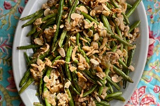 Roasted Green Beans with Mushrooms and Crunchy Onions