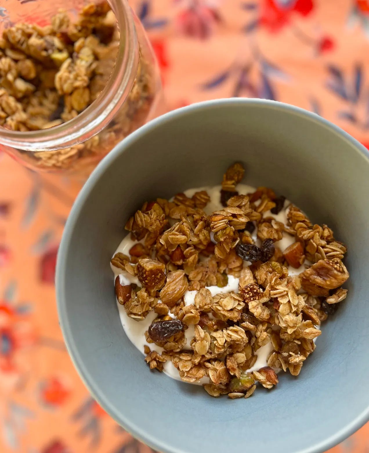 This granola, which combines toasted oats with jammy figs, raisins, almonds, and pistachios plus a heap of lemon zest and juice, tastes like pure sunshine and sea breezes.